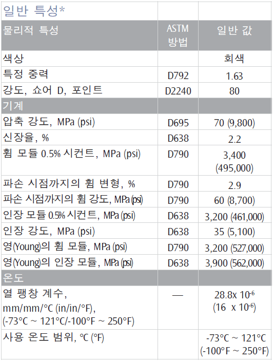 낮은 가수분해 또는 팽창성 때문에 부품 설계가 쉽고 물과 관련된 분야에서 물리적인 특성을 유지할 수 있음