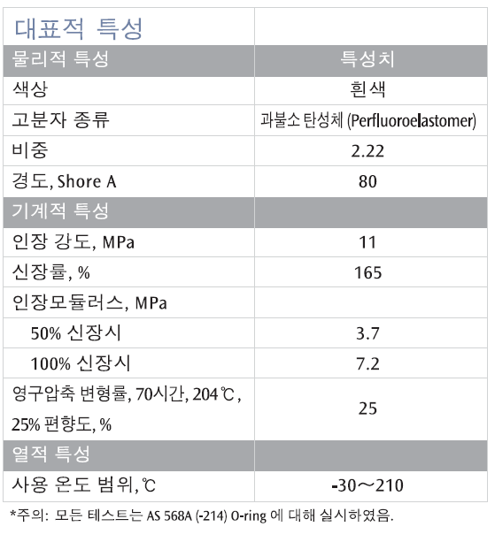 이 재질은 온도가 210°C를 넘지 않고 높은 씰링 하중을 가하지 않는 정적 플라즈마(static plasma)에서의 사진 석판(photolithography)과 확산(diffusion)공정 등에서 뛰어난 성능을 보입니다.