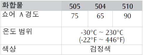 Chemraz 504와 510은 Chemraz 505보다 더 유연하거나 더 단단한 버젼입니다.