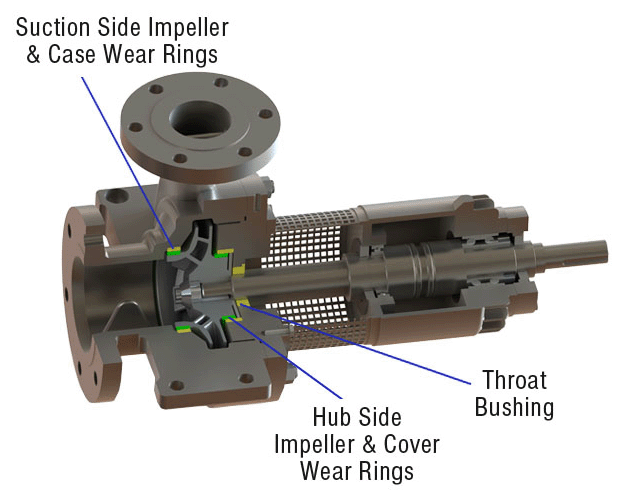 하지만 흡인력 손실, 캐비테이션(Cavitation), 드라이러닝(Dry-Running) 및 기타 이상 발생 시에는 금속과 금속이 접촉하게 되고, 그로인해서 펌프의 금속 부품들이 쓸리거나 심지어 치명적으로 고착될 수 있습니다.